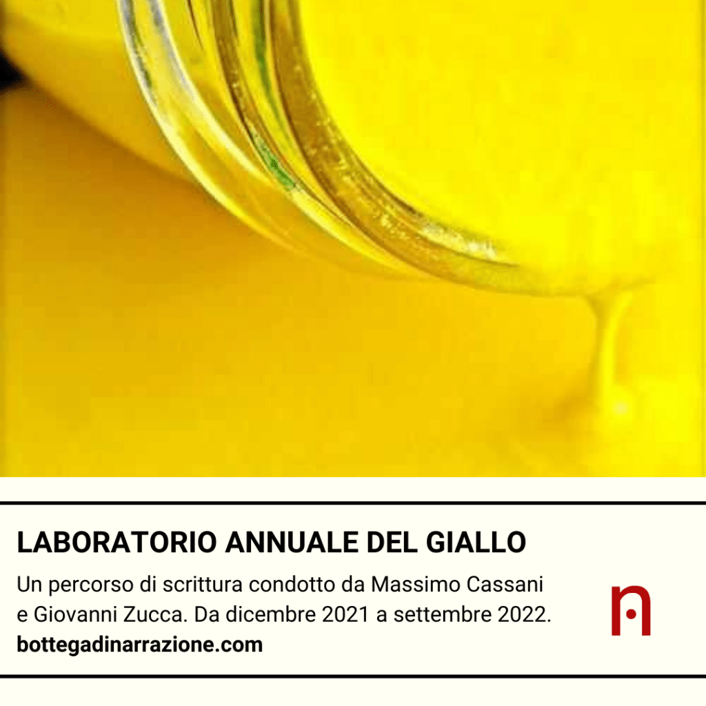 Il «Laboratorio annuale del giallo» comincia l’11 dicembre 2021. Le iscrizioni sono aperte. Chi volesse più informazioni può scrivere a bottegadinarrazione@gmail.com.
