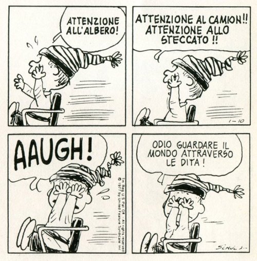 15. I soprannomi sono spesso stucchevoli, proprio perché o sono eccessivamente parlanti, o perché chiedono irresistibilmente una pedissequa spiegazione. D’altra parte, le spiegazioni vengono spesso immediatamente dimenticate dal lettore. Chi si ricorda perché Replica Van Pelt (o Ripresa, in altre traduzioni), il fratello minore di Lucy Van Pelt (sto parlando di Peanuts) si chiama così?. Manzoni non dice perché il Griso (un evidente soprannome) si chiama così: e fa bene, anche perché non serve molta immaginazione per arrivarci da soli (vita illegale, bisogno di nascondere la propria identità ecc.), benché «Griso» non sia di per sé parlante. Sparafucile (nel «Rigoletto» di Verdi) sarebbe invece, c’è poco da fare, troppo parlante per un romanzo realistico; ma all’opera va benissimo.